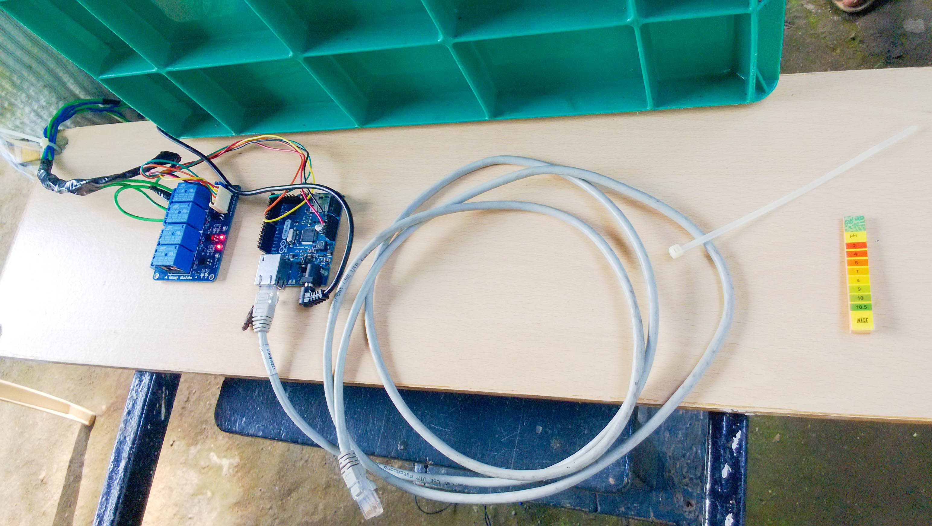 An urban farming technique to grown fish and to grow plants using the waste products of these fish with in the same system. Control the the fish feeder ,the water flow water-aeration and waste water out let all from a locally hosted webpage.