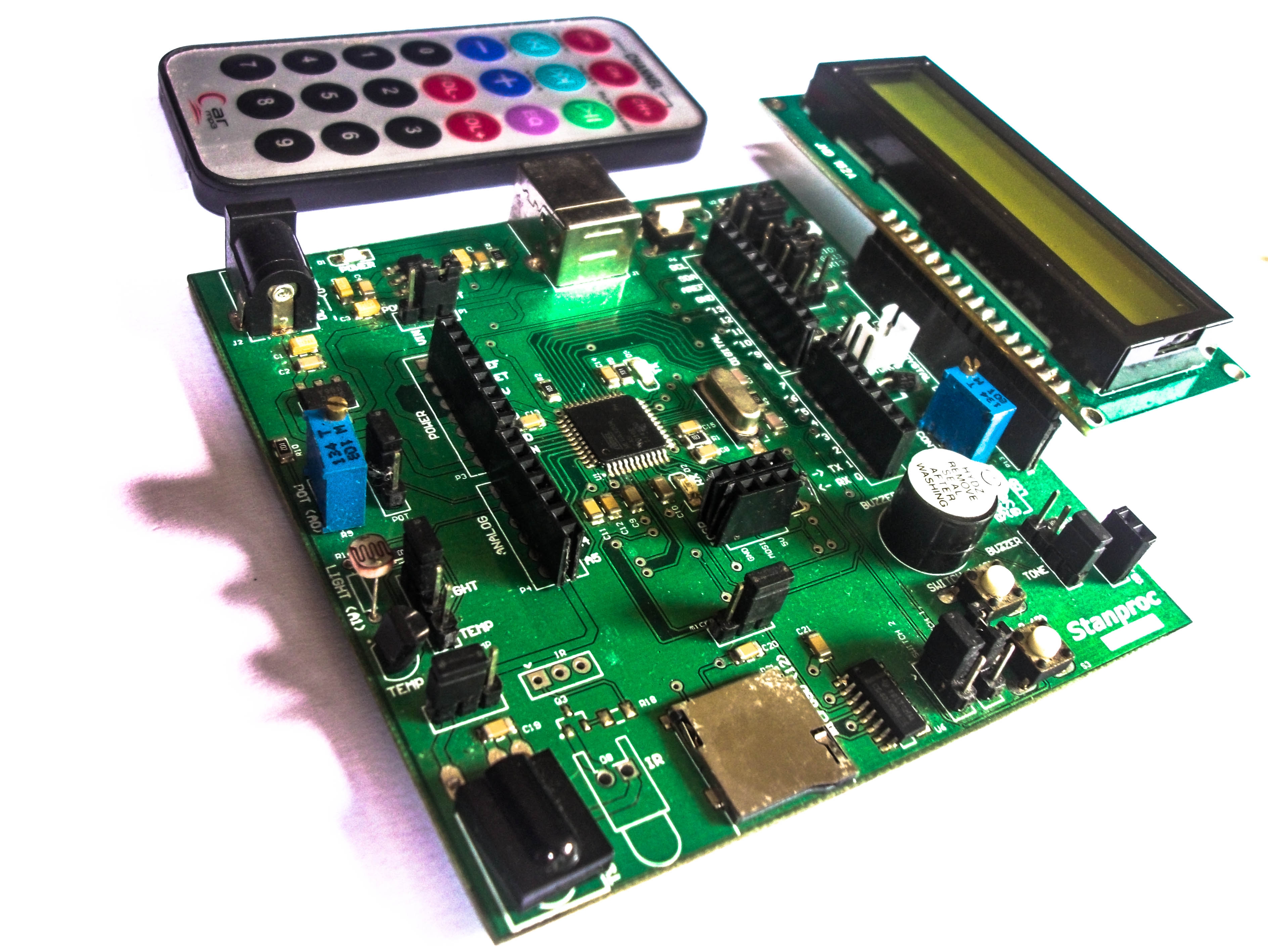 All the peripherals mentioned above are inbuilt on to the board and do not require any shields or add-ons. The burgstrips are also shield friendly. All the peripherals are already wired on and can be selected by using the jumper pins.